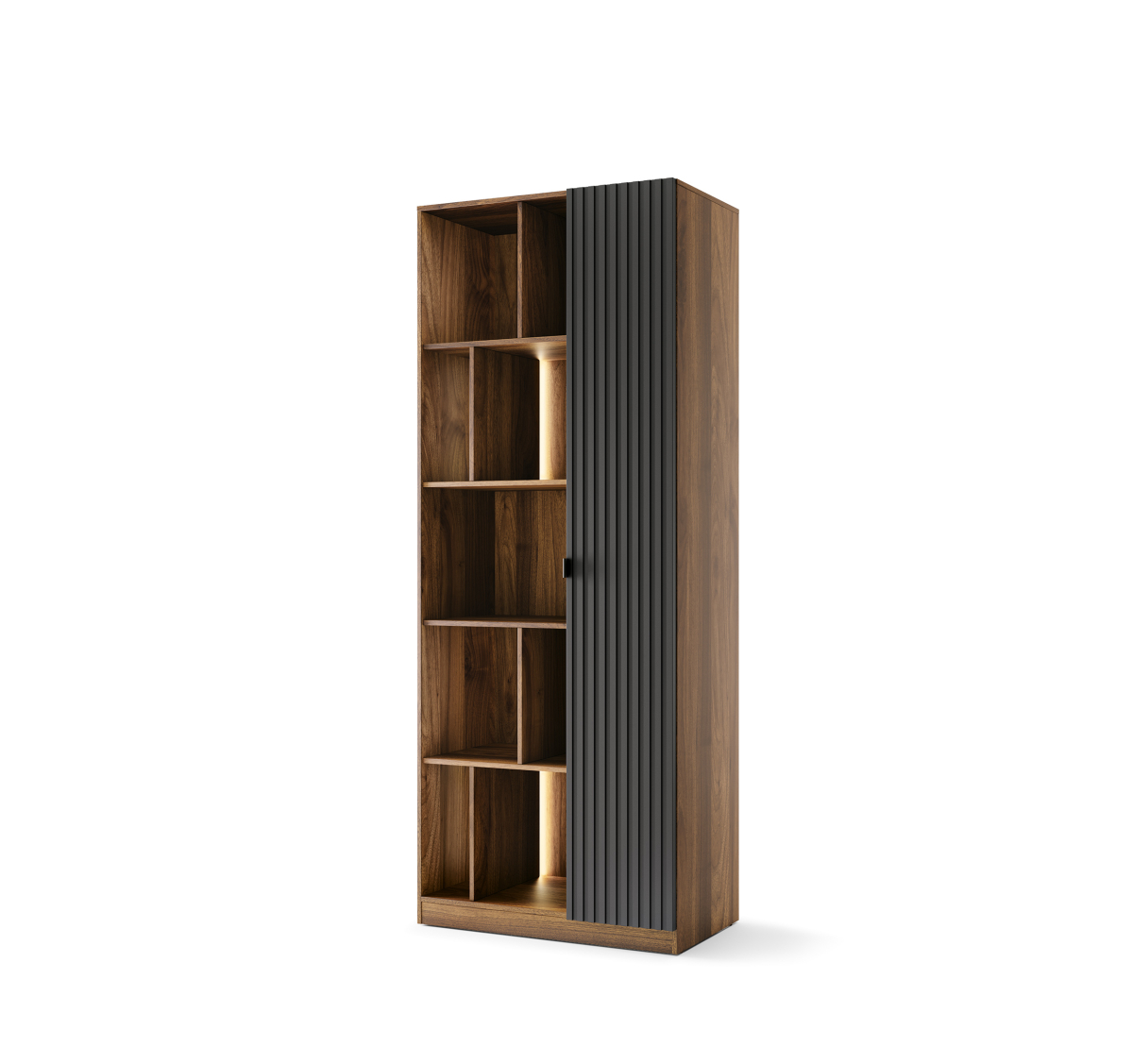 Sektorový nábytok RADIUM - regál 1D č.16,  predstavuje dokonalé spojenie moderného dizajnu, kvalitných materiálov a praktických riešení pre každodenné používanie. Elegantná kombinácia dekoru orech columbia a matnej čiernej farby vytvára nadčasový vzhľad, ktorý dokonale zapadne do moderných aj minimalistických interiérov. Vďaka modulárnemu riešeniu si môžete zostavu prispôsobiť presne podľa svojich potrieb a priestoru. RADIUM ponúka dostatok úložného priestoru pre elektroniku, knihy, dekorácie aj každodenné drobnosti. Obývačkový sektor RADIUM orech columbia – čierna je prémiový sektorový nábytok do obývačky, ktorý spája štýl, funkčnosť a komfort. Vďaka LED osvetleniu, tichému zatváraniu a precíznemu spracovaniu sa stane dominantou vášho interiéru. Integrované LED osvetlenie zarátané v cene, dodáva nábytku luxusný vzhľad a zároveň vytvára príjemnú svetelnú atmosféru v obývačke. Osvetlené vitríny a police zvýraznia dekorácie, knihy či dizajnové doplnky.