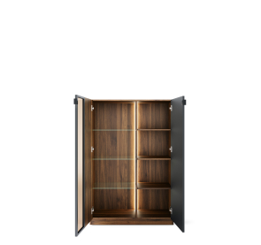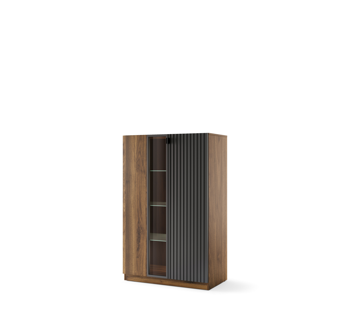 Sektorový nábytok RADIUM - vitrína 2D č.15, predstavuje dokonalé spojenie moderného dizajnu, kvalitných materiálov a praktických riešení pre každodenné používanie. Elegantná kombinácia dekoru orech columbia a matnej čiernej farby vytvára nadčasový vzhľad, ktorý dokonale zapadne do moderných aj minimalistických interiérov. Vďaka modulárnemu riešeniu si môžete zostavu prispôsobiť presne podľa svojich potrieb a priestoru. RADIUM ponúka dostatok úložného priestoru pre elektroniku, knihy, dekorácie aj každodenné drobnosti. Obývačkový sektor RADIUM orech columbia – čierna je prémiový sektorový nábytok do obývačky, ktorý spája štýl, funkčnosť a komfort. Vďaka LED osvetleniu, tichému zatváraniu a precíznemu spracovaniu sa stane dominantou vášho interiéru. Integrované LED osvetlenie zarátané v cene, dodáva nábytku luxusný vzhľad a zároveň vytvára príjemnú svetelnú atmosféru v obývačke. Osvetlené vitríny a police zvýraznia dekorácie, knihy či dizajnové doplnky.