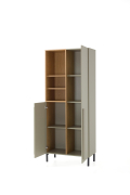 Asymetrické detaily - skrine a komody zaujmú netradičným členením dvierok a otvorenými policami v dekore duba, ktoré slúžia na vystavenie kníh či dekorácií.