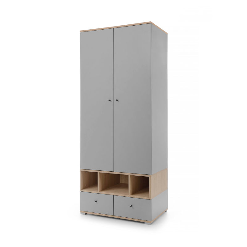 Neutrálne odtiene sivej a dubu piškótového, doplnené o jemné čierne úchytky, vnášajú do priestoru nadčasovú eleganciu a útulnosť. Nábytok Oro ľahko zapadne do každého interiéru a porastie spolu s vaším dieťaťom – od prvých hier až po školské roky.