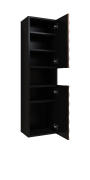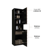 Moderný kúpeľný nábytok ENZO - vysoká skrinka na zavesenie 30WTNN07 Ľ,P. Kvalitný sektorový nábytok do kúpeľne s 3D vzorom na dvierkach. Korpusy o hrúbke 18 mm, sú vyrobené z laminovanej certifikovanej drevotriesky napustenej špeciálnym lepom odolným voči vlhkosti vo farebnom prevedení čierny onyx. Ohranené sú ABS páskou na predĺženie životnosti. Dvierka sú vyrobené z MDF na povrchu s 3D efektom vo farebnom prevedení dub catania. Použité kvalitné pánty HETTICH s pomalým zatváraním, úchtky sú kovové čierne.