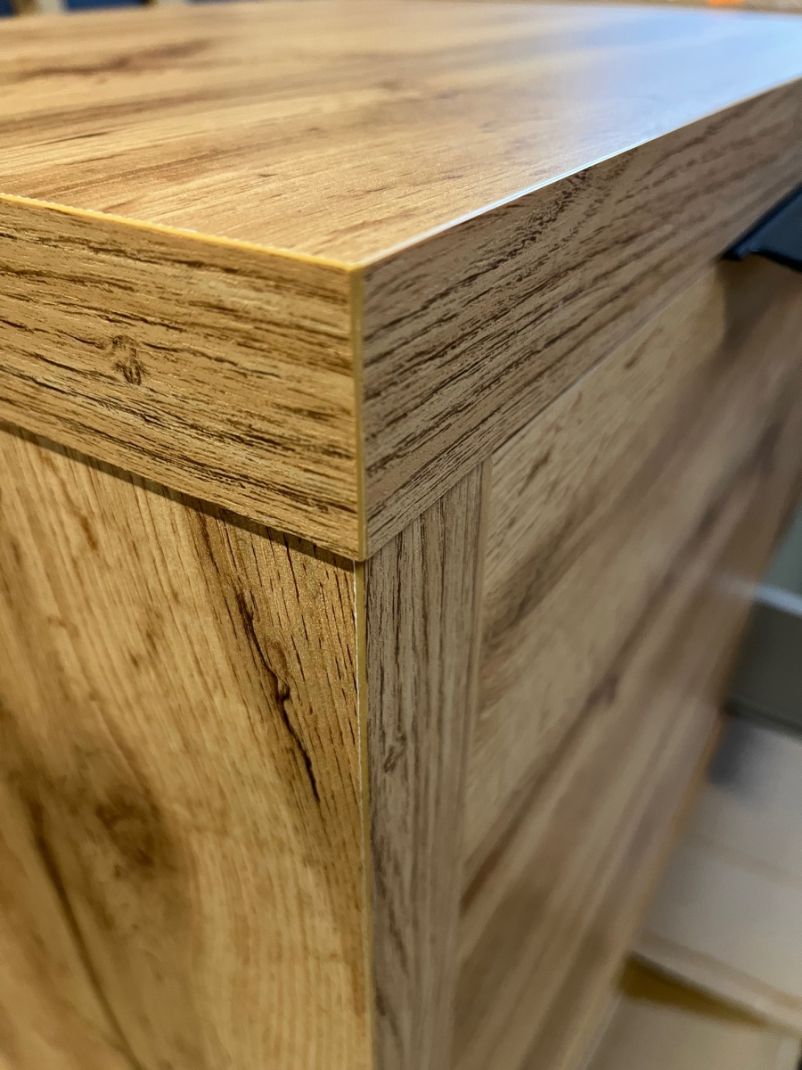 Detaily - predné plochy a dvere s hrúbkou 16 mm sú doplnené o odolné ABS hrany, ktoré chránia nábytok pred mechanickým poškodením.