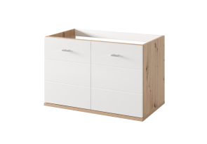 Kúpeľňový nábytok STING - moderný sektorový nábytok do kúpeľne vyrobený vo výbornej kvalite prevedenia. Farebné prevedenie dub artisan - biely lesk. Materiál korpus - certifikovaná laminovaná drevotrieska, dvere - kvalitná fólia na MDF vo vysokom lesku. Úchytky aj nožičky plastové.