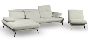 Taburetka Santi je moderný a funkčný doplnok k rohovej pohovke z rovnakej kolekcie. Vyniká elegantným dizajnom na štíhlych kovových nožičkách a praktickým využitím.