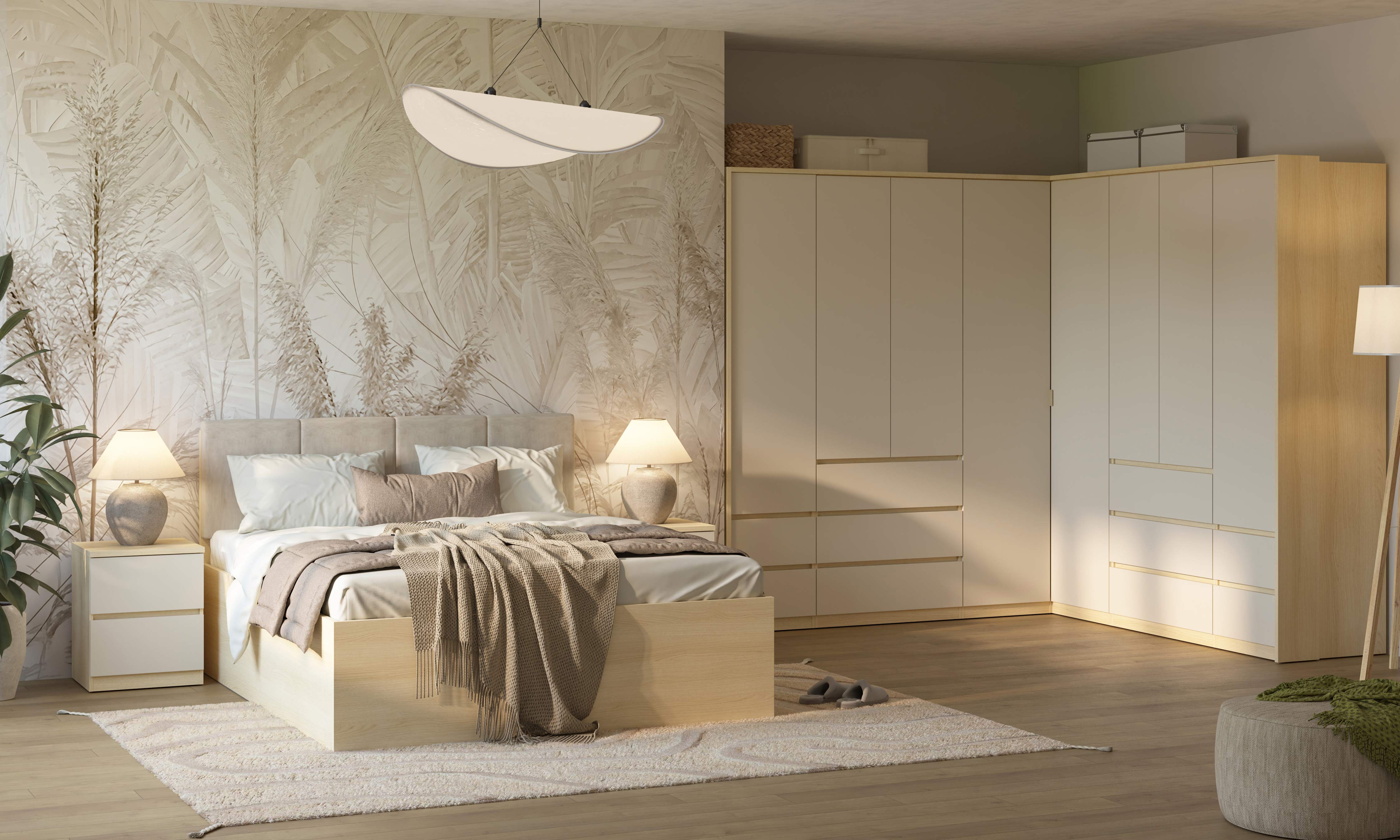 Maximálne využitý priestor - od priestranných rohových skríň až po inteligentné nadstavce nad posteľ – zabudnite na neporiadok.