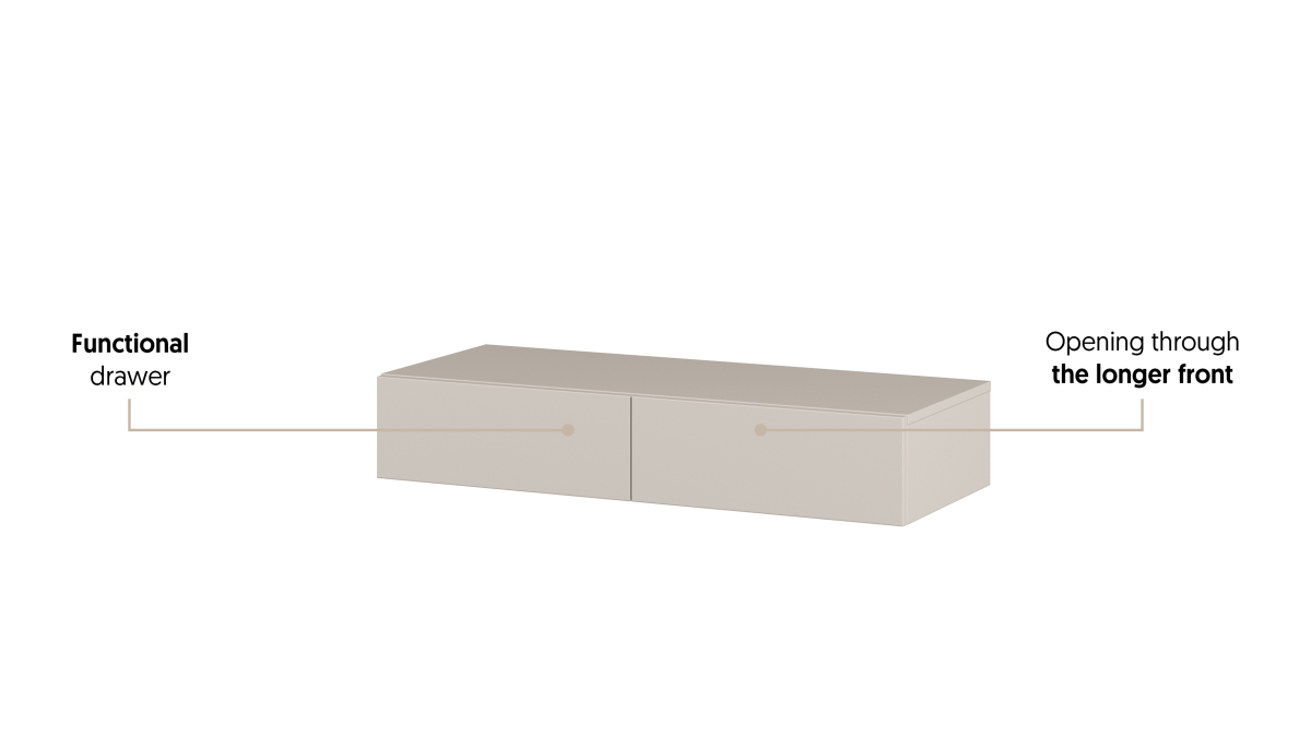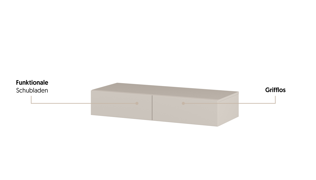 Sektorová spálňa JUKON - toaletka 24KSND49 - moderný spálňový nábytkový sektor v nadčasovom dizajne, trendovom farebnom prevedení kašmír, na vysokých / 19,5 cm / čiernych kovových nožičkách. Spálňa JUKON prinesie do interiéru vašej spálne eleganciu, atmosféru harmónie a tepla. Trendový kašmírový odtieň v kombinácii so štíhlymi čiernymi nohami vytvára jemný kontrast, ktorý prinesie do interiéru vašej spálne vizuálnu ľahkosť a vzdušnosť. Materál z ktorého je nábytok vyrobený je laminovaná certifikovaná drevotrieska v hrúbkach 15, 22 mm. Úchytky nie sú, na otváranie slúži systém STLAČ A OTVOR.