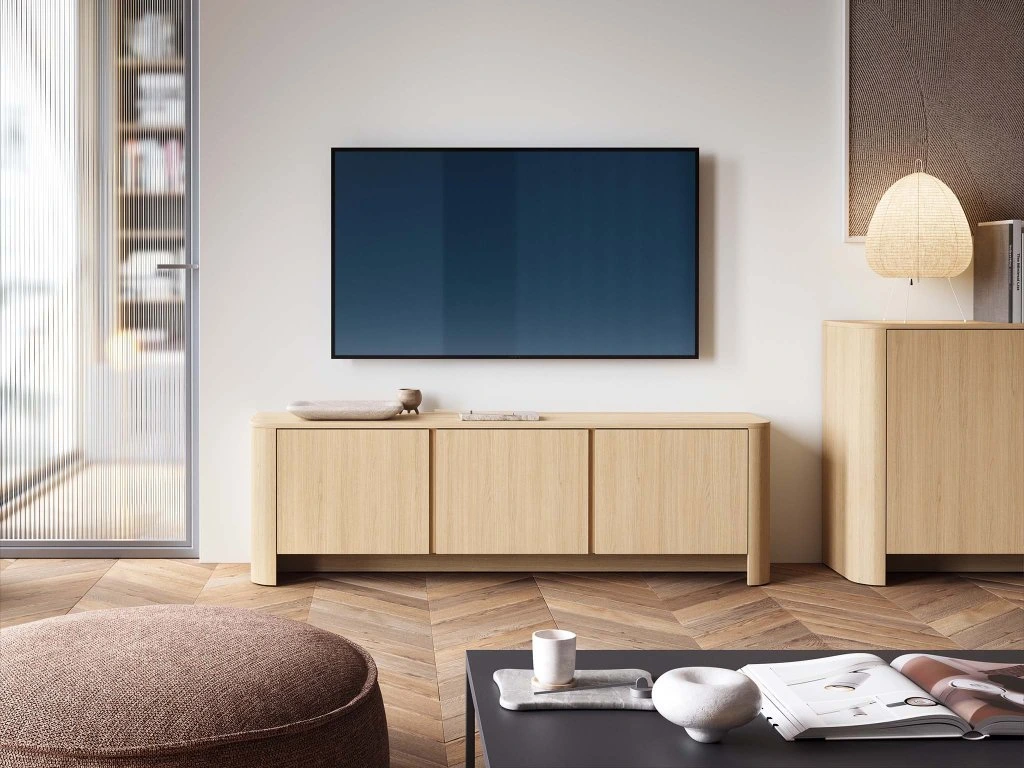 Televízny stolík BARI RTV168 v prírodnom dekore dub Vicenza vnesie do obývačky hrejivú atmosféru a moderný štýl. Za tromi dvierkami ukrýva praktický priestor na multimediálne zariadenia, príslušenstvo aj drobnosti, ktoré chcete mať usporiadané a mimo očí.