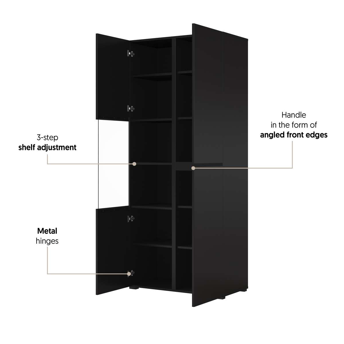 čierny onyx 24W3MY..,predstavuje moderné, elegantné a flexibilné riešenie pre zariadenie štýlovej obývačky. Minimalistický dizajn, čisté línie a luxusný matný povrch v odtieni čierneho onyxu vytvárajú nadčasový vzhľad, ktorý dokonale zapadne do moderných, industriálnych aj loftových interiérov.