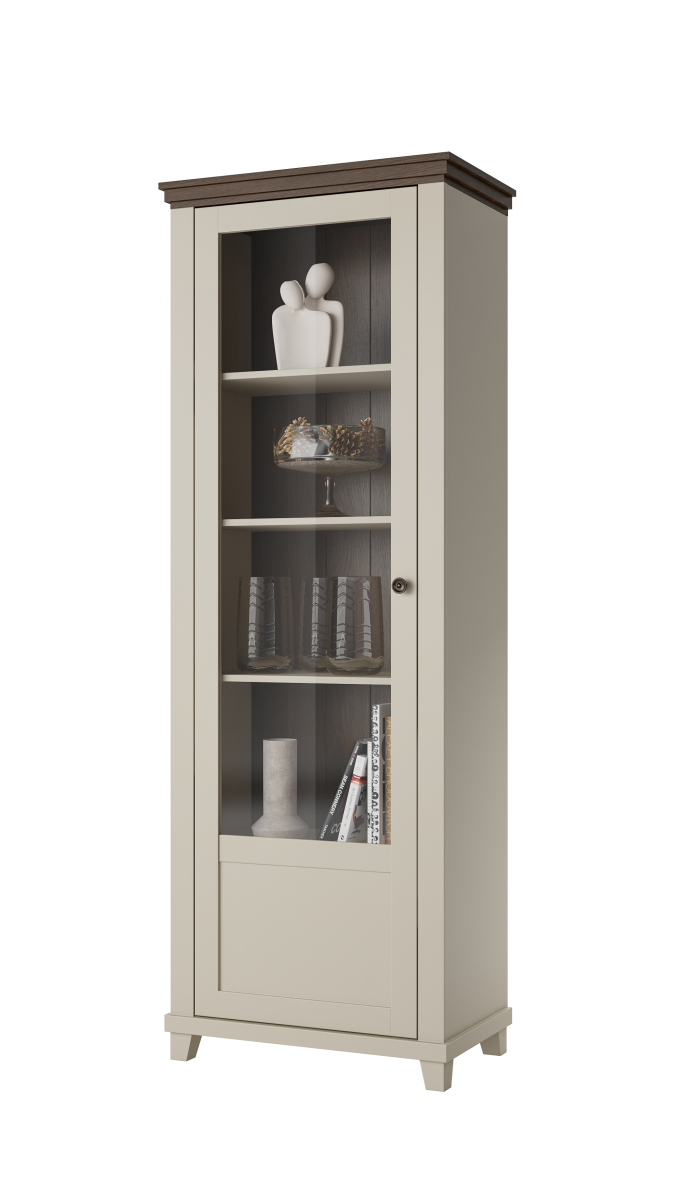 Kvalitný EVORA sektorový nábytok - vitrína ľavá 24D1JU05 od firmy HELVETIA. Krásne farebné prevedenie bežová - bežová / dub dunin je výsledkom najnovších trendov bytových dizajnérov. Čo sa týka štýlu je možné nábytok EVORA zaradiť do modernejšej verzie klasického dizajnu, je vhodný do obývacej izby alebo jedálne. Korpusy sú vyrobené z laminovanej DTD, dvierka a vrchné vence sú potiahnuté fóliou. Nožičky sú vyrobené z MDF a potiahnuté fóliou. Použité kvalitné pánty a kovové úchytky. Nábytok EVORA má výbornú kvalitu prevedenia je určený pre náročných zákazníkov, zabalený je demont v kartónoch. Možnosť doobjednať LED osvetlenie.